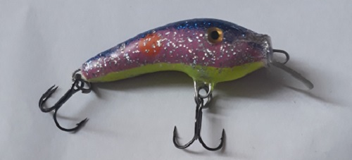 Vaapussa on sininen hile selkä, vaaleanpunainen kylki ja fluori keltainen maha.
